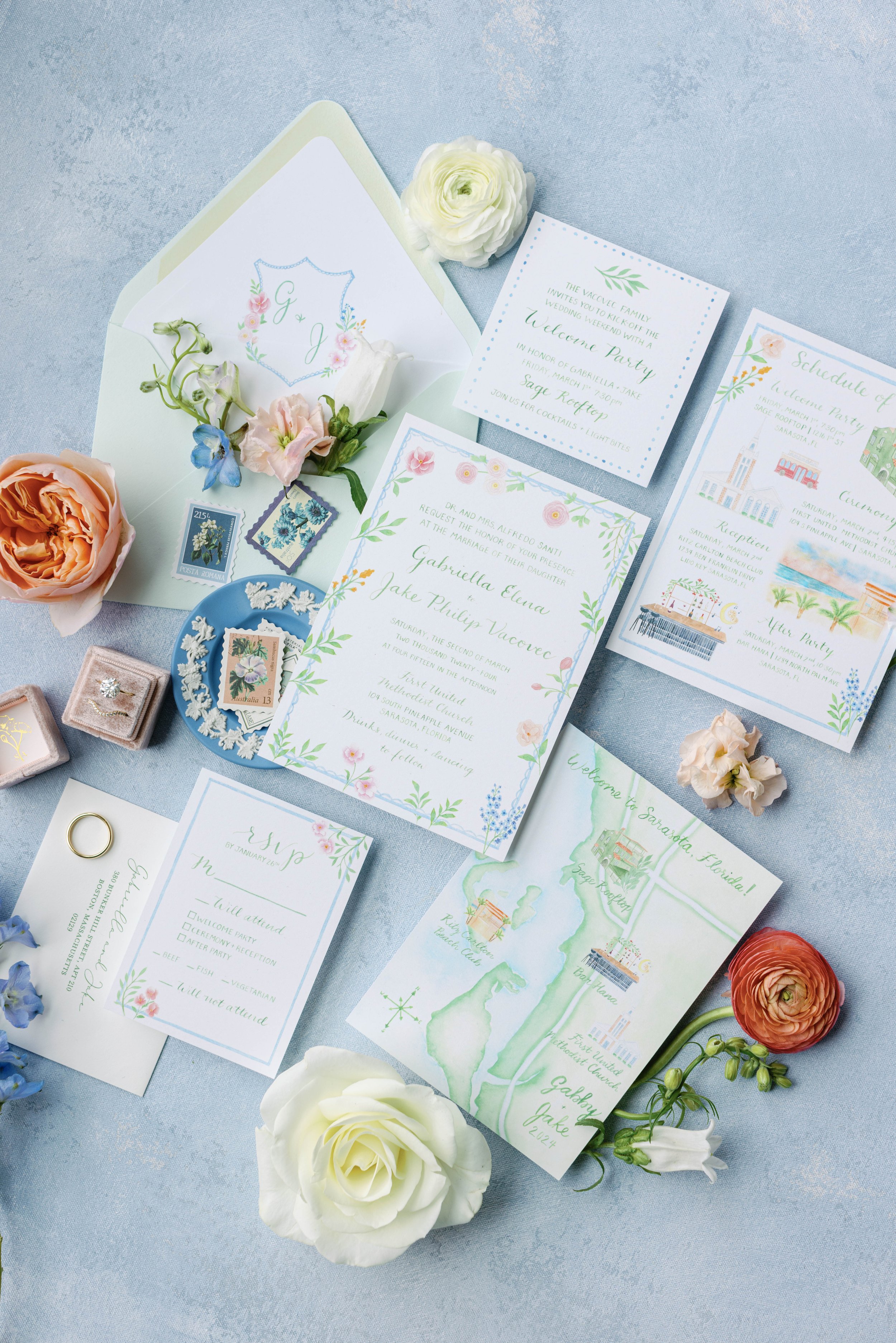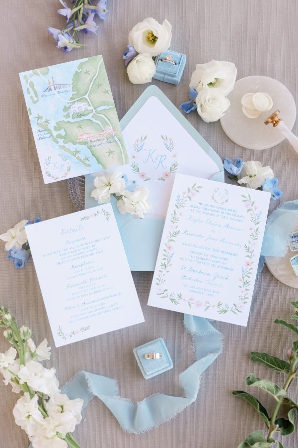 Our custom watercolor stationery starts at 3,500 for a full invitation suite.
