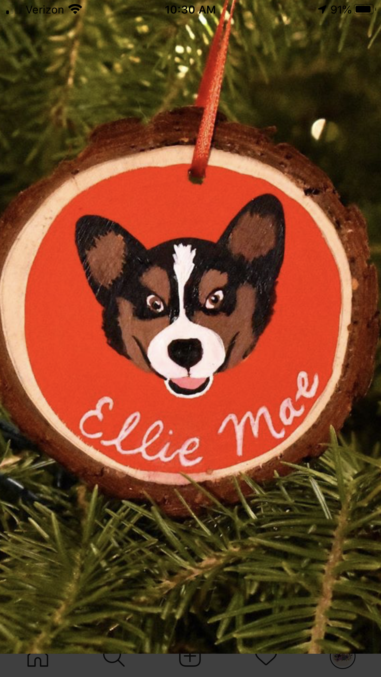 Hand-painted portrait of your pet on a wooden ornament with ribbon. Perfect Christmas gift for loved ones.